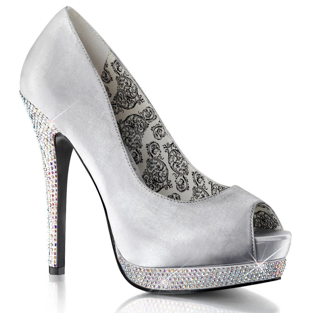 Additional Info: 5 1/4″ (13.3cm) Heel, 1 1/2″ (3.8cm) Platform Peep Toe Pump Featuring Rhinestones on Lower Platform.