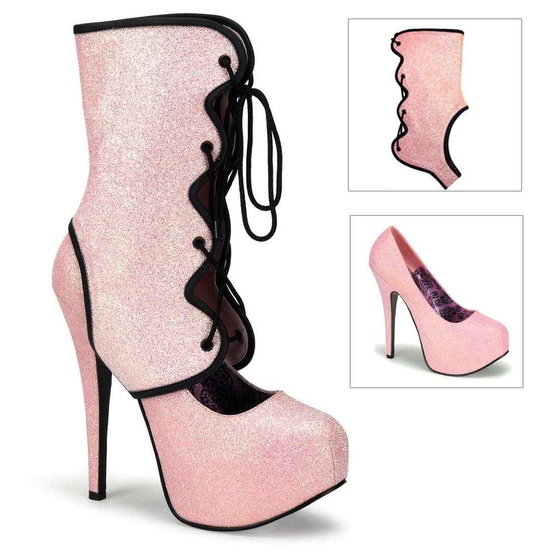 Additional Info: 5 3/4″ (14.6cm) Heel, 1 3/4″ (4.5cm) Concealed Platform, Mini Glitter Pump with Detachable Shaft.
