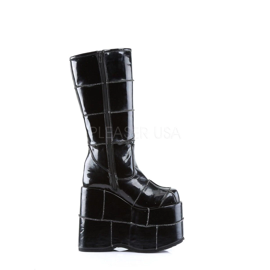 STACK-301 Black Vegan Leather Unisex Platform Shoes & Boots (SKU: STA301/B/PU)