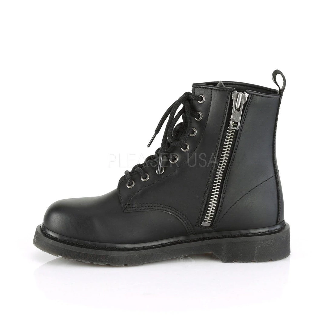 BOLT-100 Black Vegan Leather Unisex Combat Boots (SKU: BOLT100/BVL)