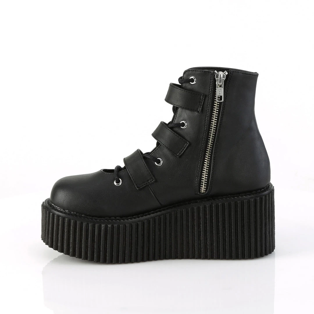 CREEPER-260 Black Vegan Leather Women’s Creepers (SKU: CRE260/BVL)
