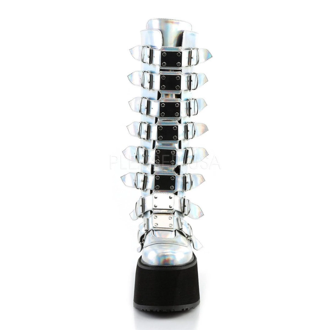 DAMNED-318 Silver Hologram Vegan Leather Women’s Mid-Calf & Knee High Boots (SKU: DAM318/SHG)
