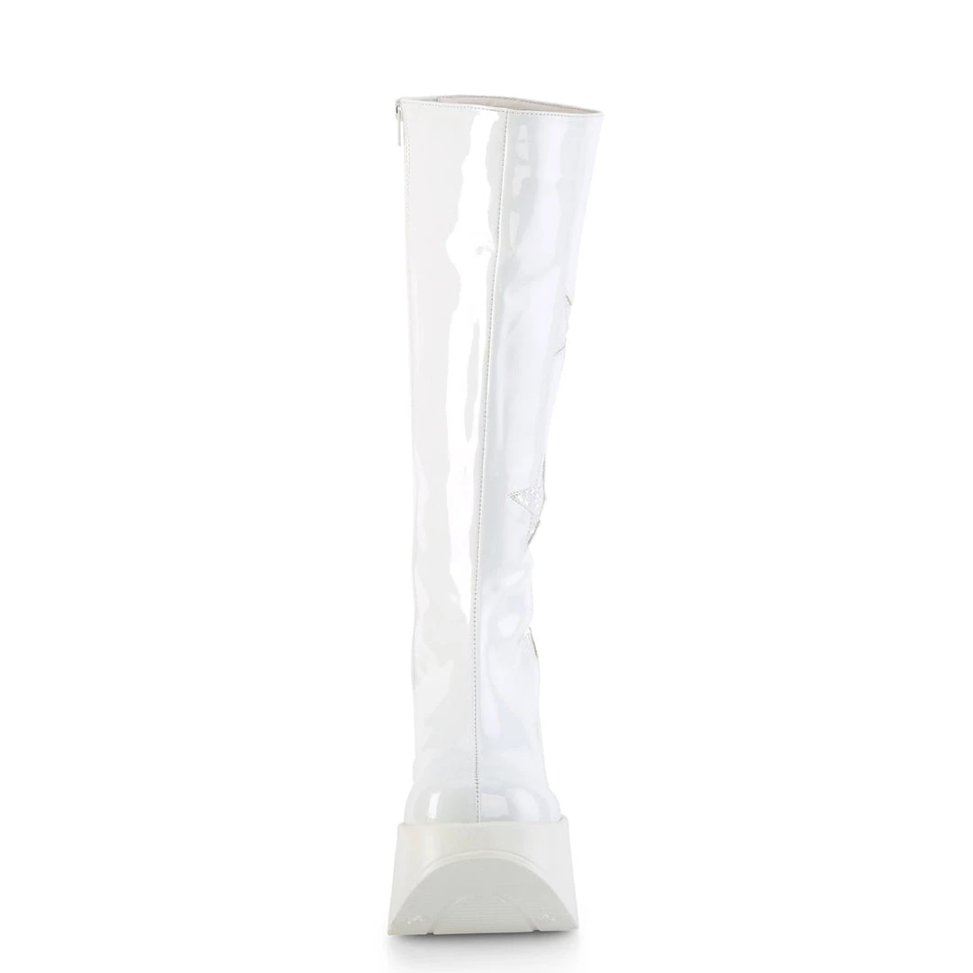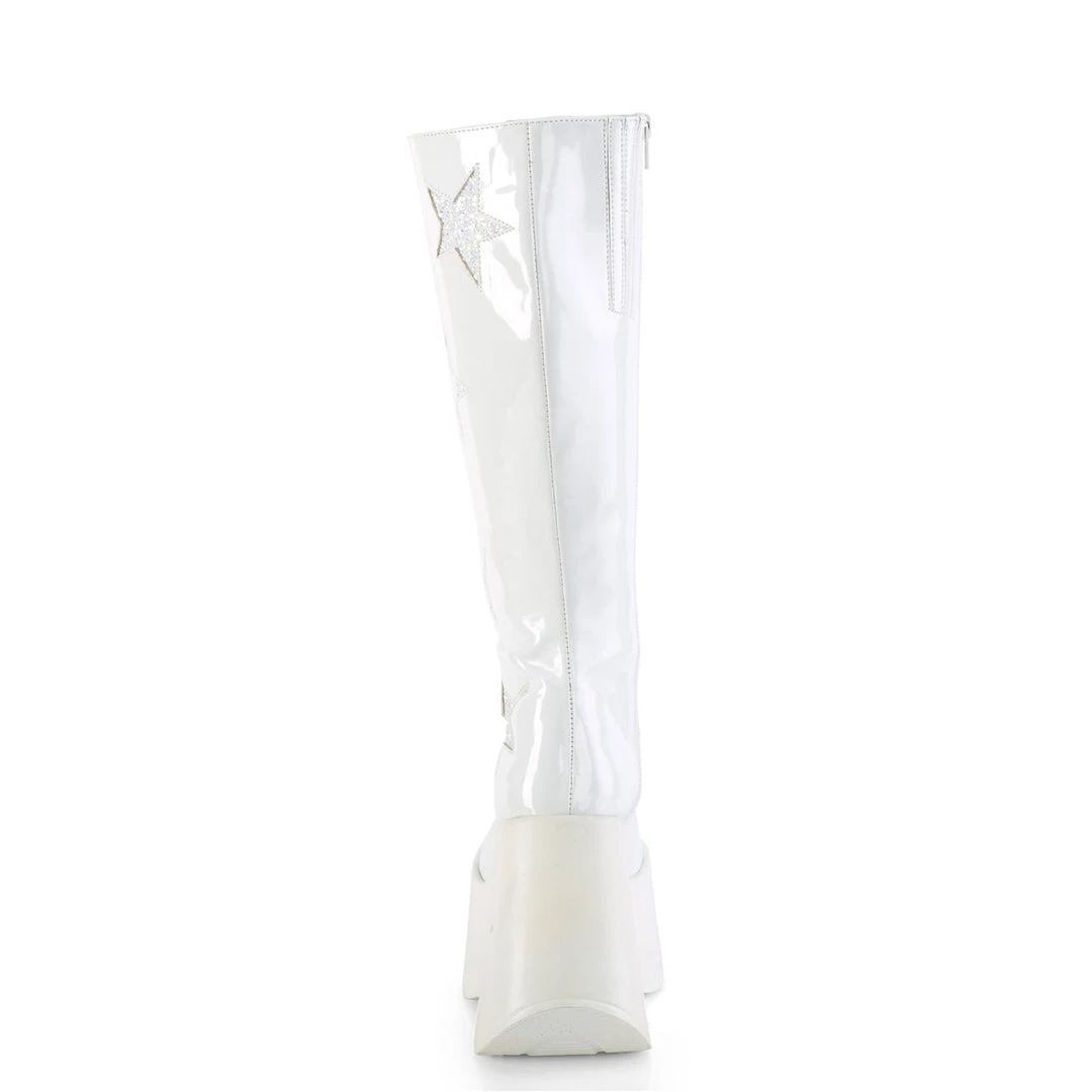 DYNAMITE-218 White Patent-White Multi Glitter Women’s Mid-Calf & Knee High Boots (SKU: DYN218/W-WMCG)