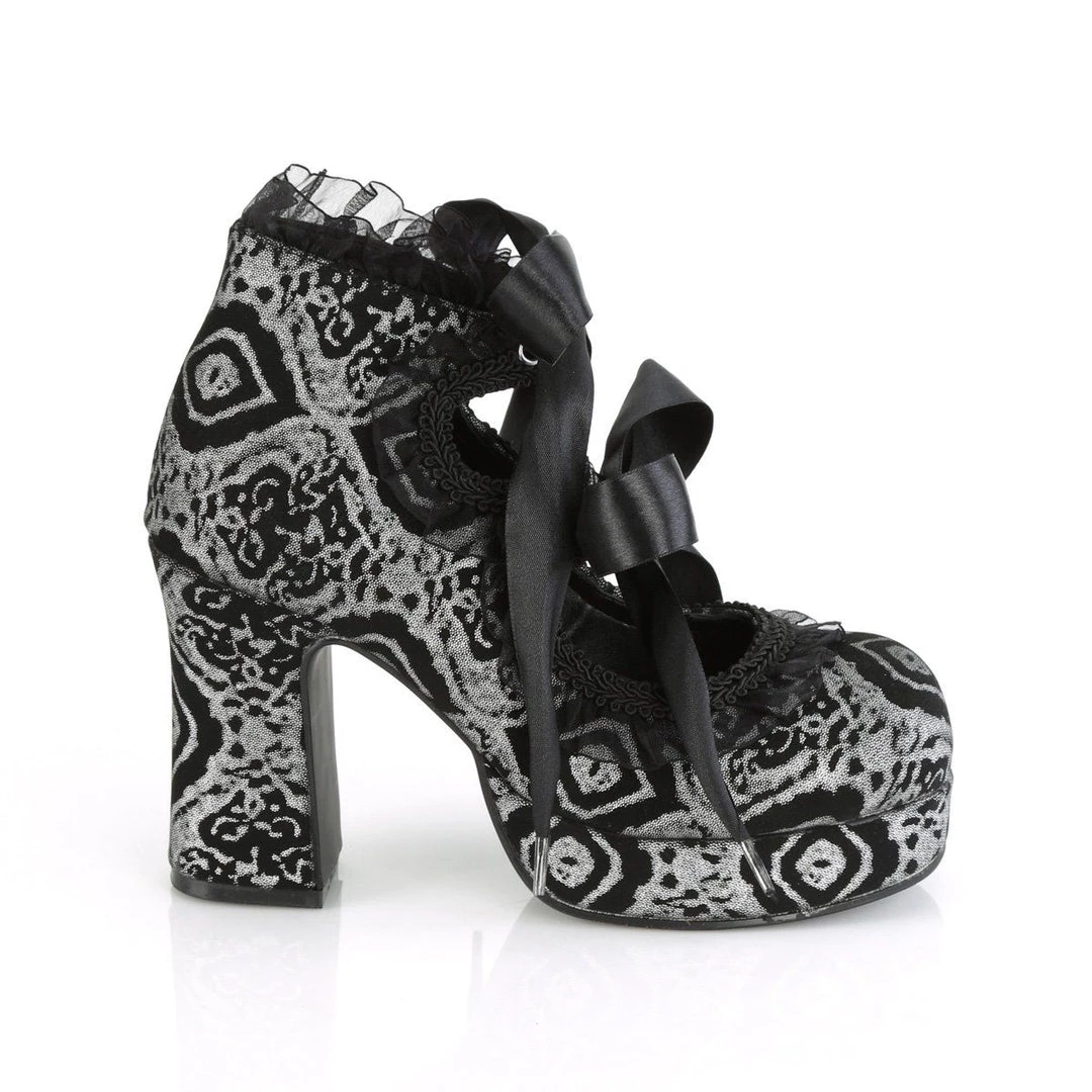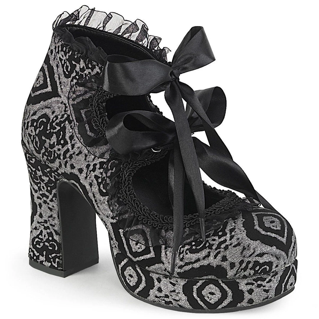 GOTHIKA-53 Black-Silver Faux Nubuck Leather Women’s Heels & Platform Shoes (SKU: GOT53/B-SNBVL)