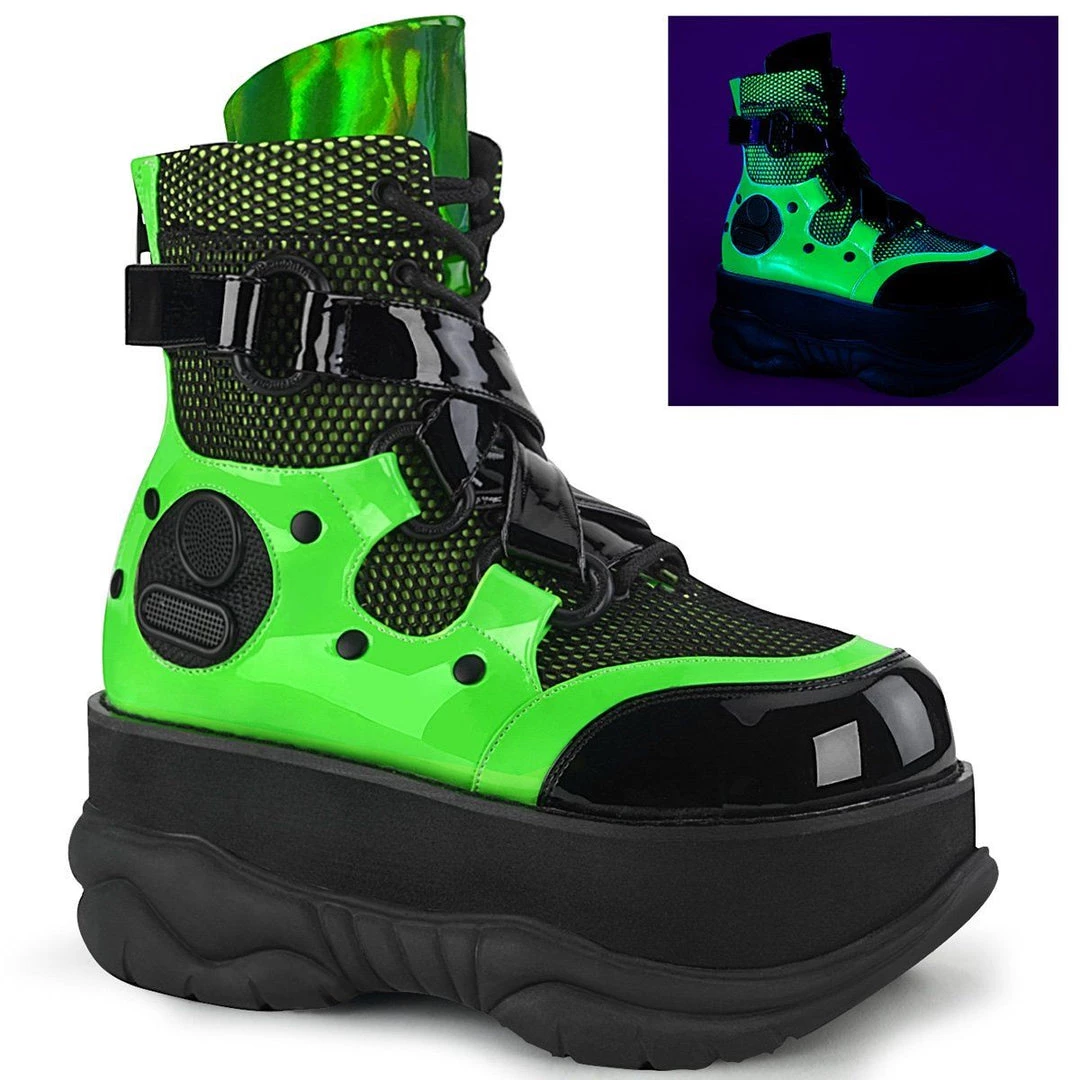 NEPTUNE-126 Black-Green Patent Multi Unisex Platform Shoes & Boots (SKU: NEP126/BPT-GRNMC)