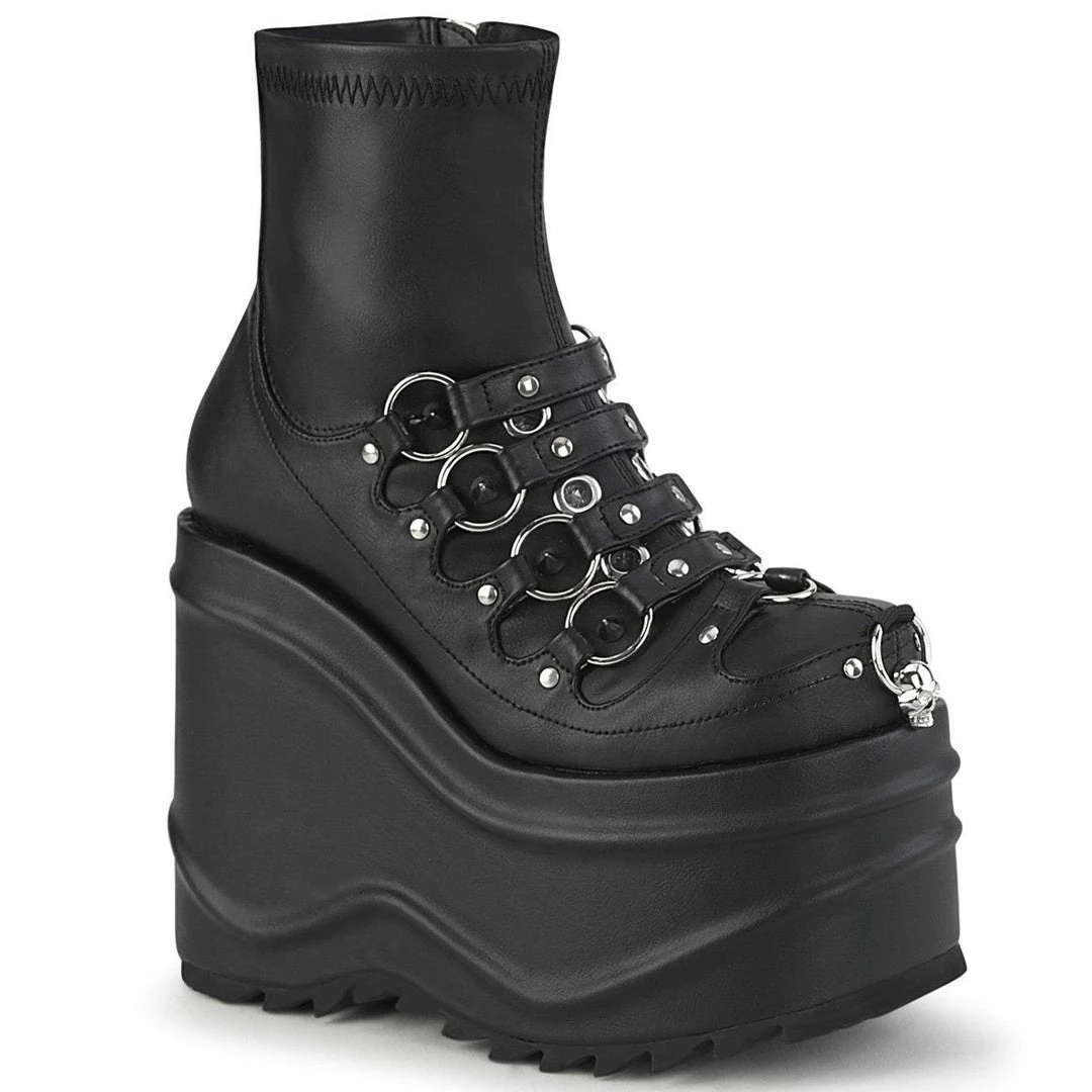 WAVE-110 Black Stretch Vegan Leather Women’s Ankle Boots (SKU: WAVE110/BVL)