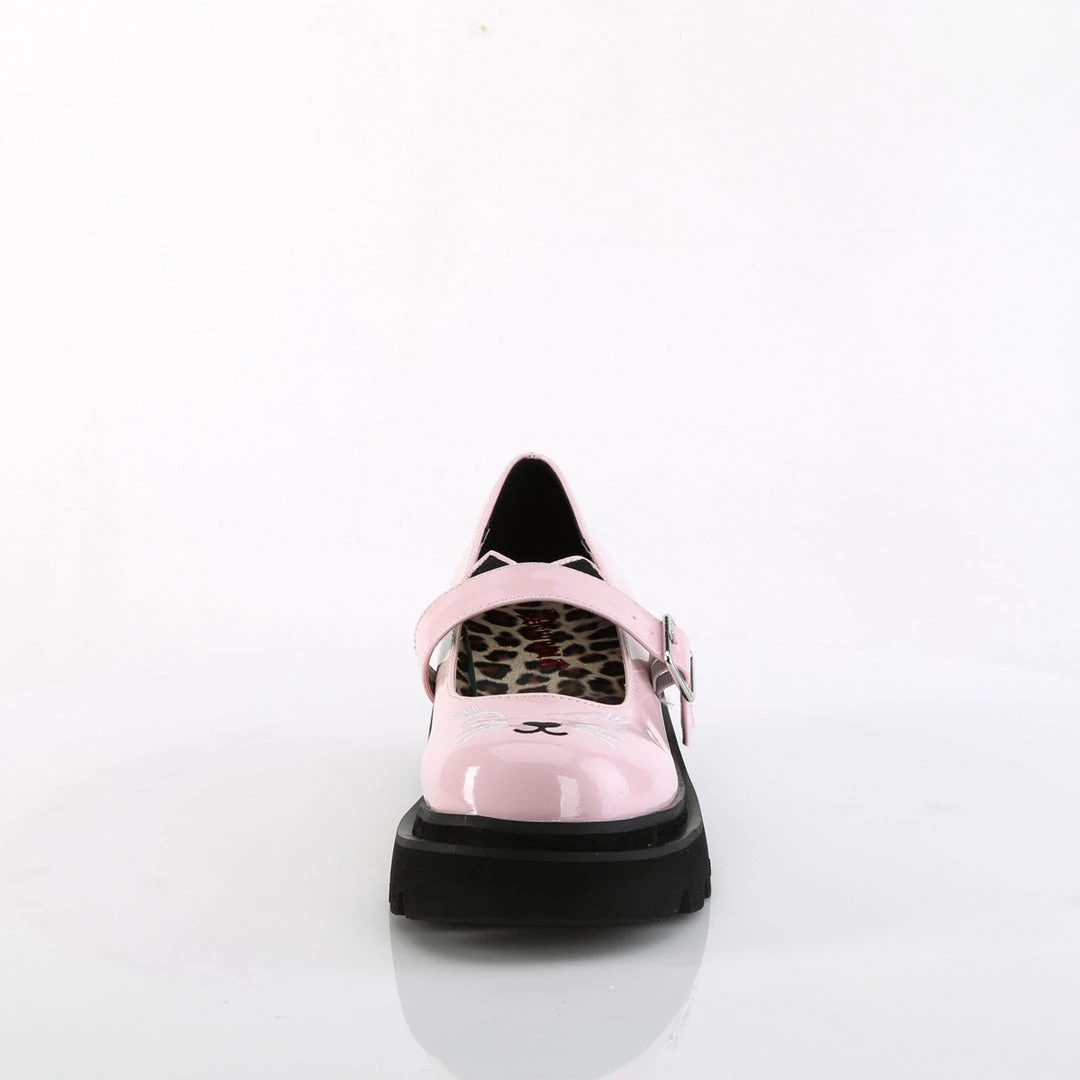 Additional Info: 2 1/2″ Tiered Platform Maryjane Featuring Embroidered Cat Face on Toe and Ears on Strap.