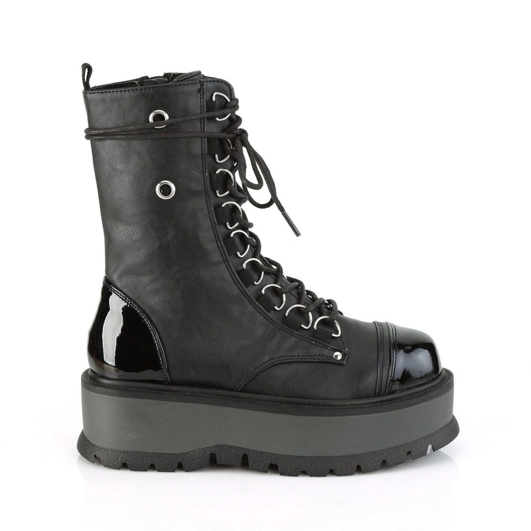 SLACKER-150 Black Vegan Leather-Patent Women’s Ankle Boots (SKU: SLK150/BVL-PT)