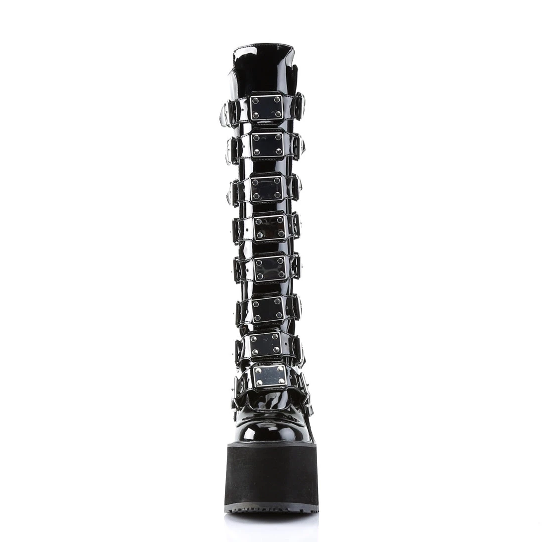 Additional Info: 5 1/2″ (14cm) Wedge Platform Goth Punk Gogo Knee Boot with Metal Plates, Full Back Zip Closure.