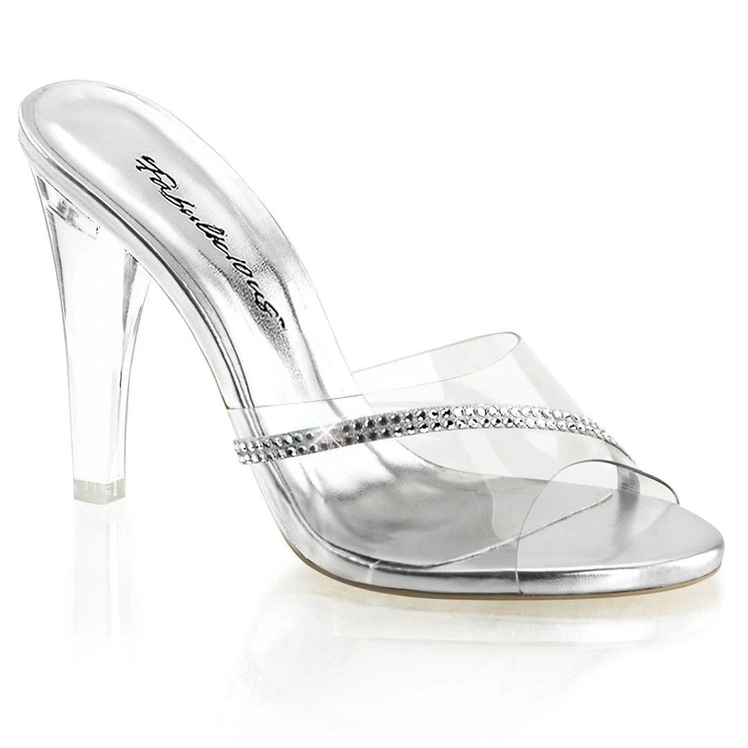 Additional Info: 4″ (105 mm) Lucite Heel with Rhinestone Detail.
