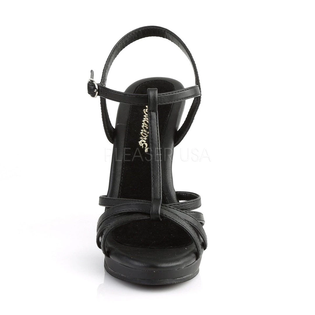 Details: 4 1/2 Inch Heel, 1/2 Inch Plaform T-Strap Sandal.