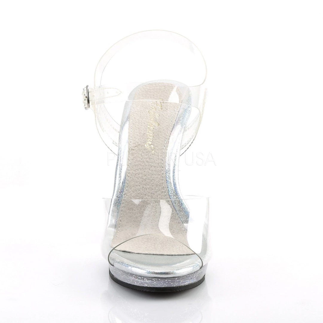 Details: 4 1/2 Inch Heel, 1/2 Inch Plaform Ankle Strap Sandal W/Mini Glitters.