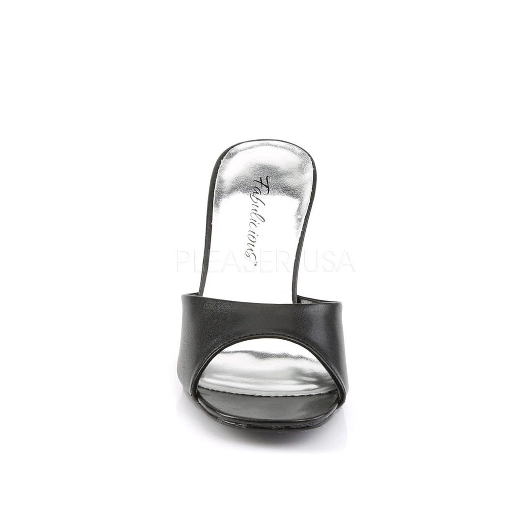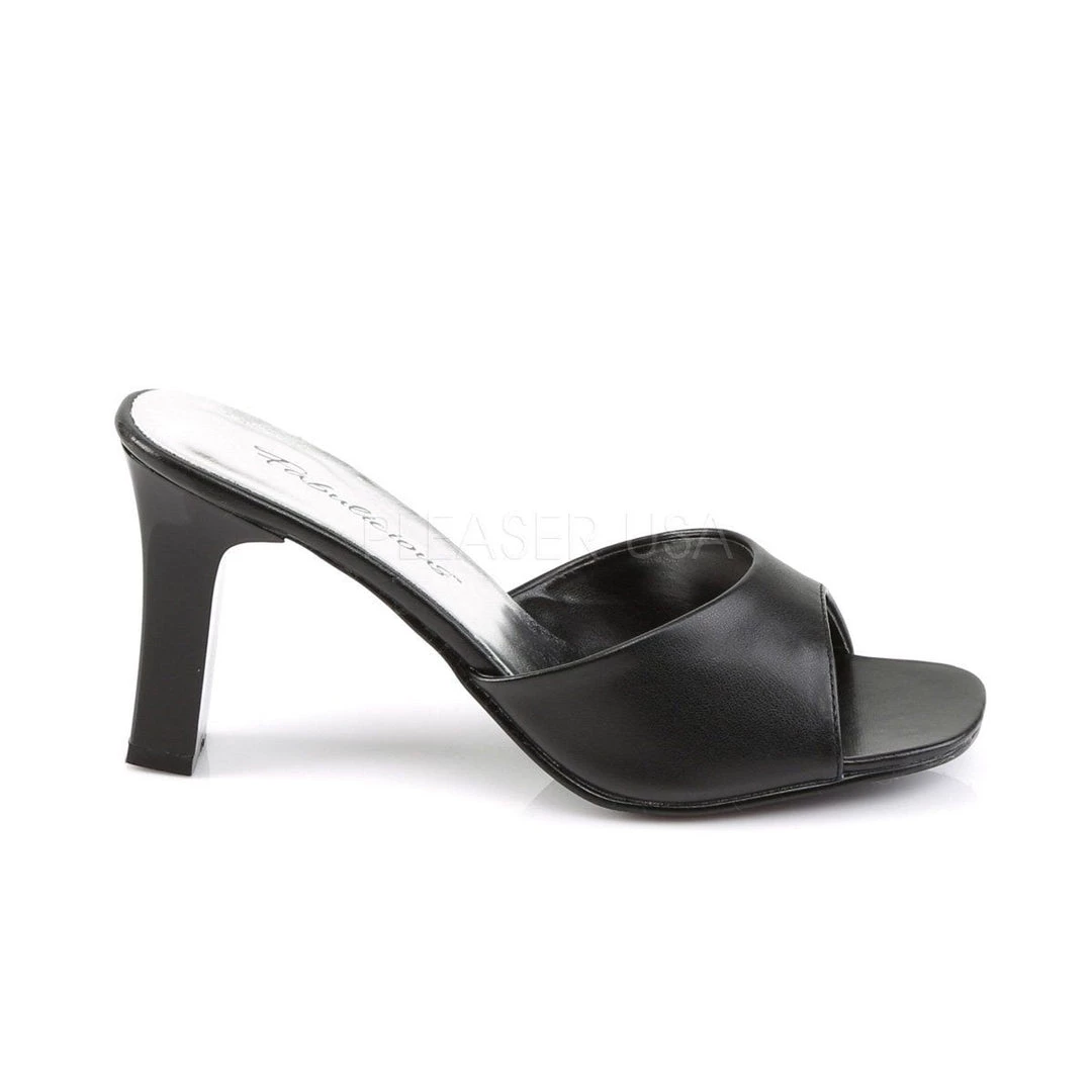 Additional Info: 3 1/4″ (8.3cm) Square Heel Slide Sandal.