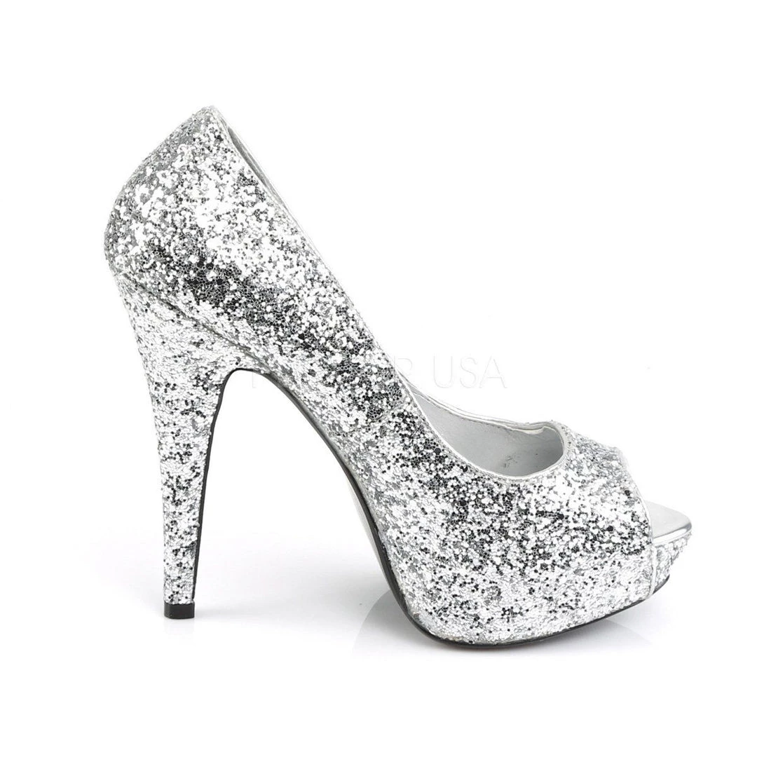 Details: 5 Inch Heel, 1 Inch Plaform Glitter Peep Toe Pump, 80’s, New Wave.