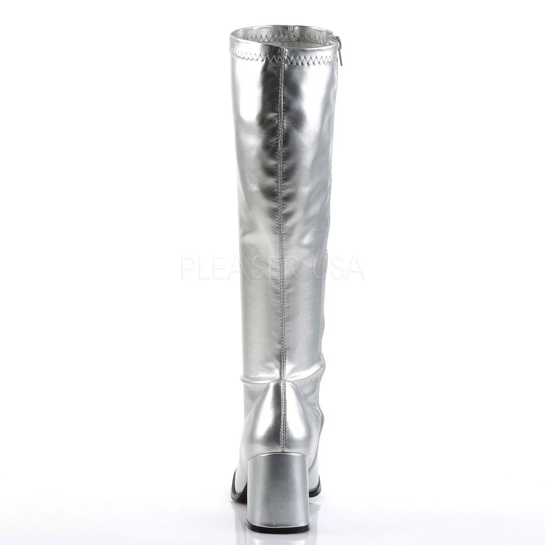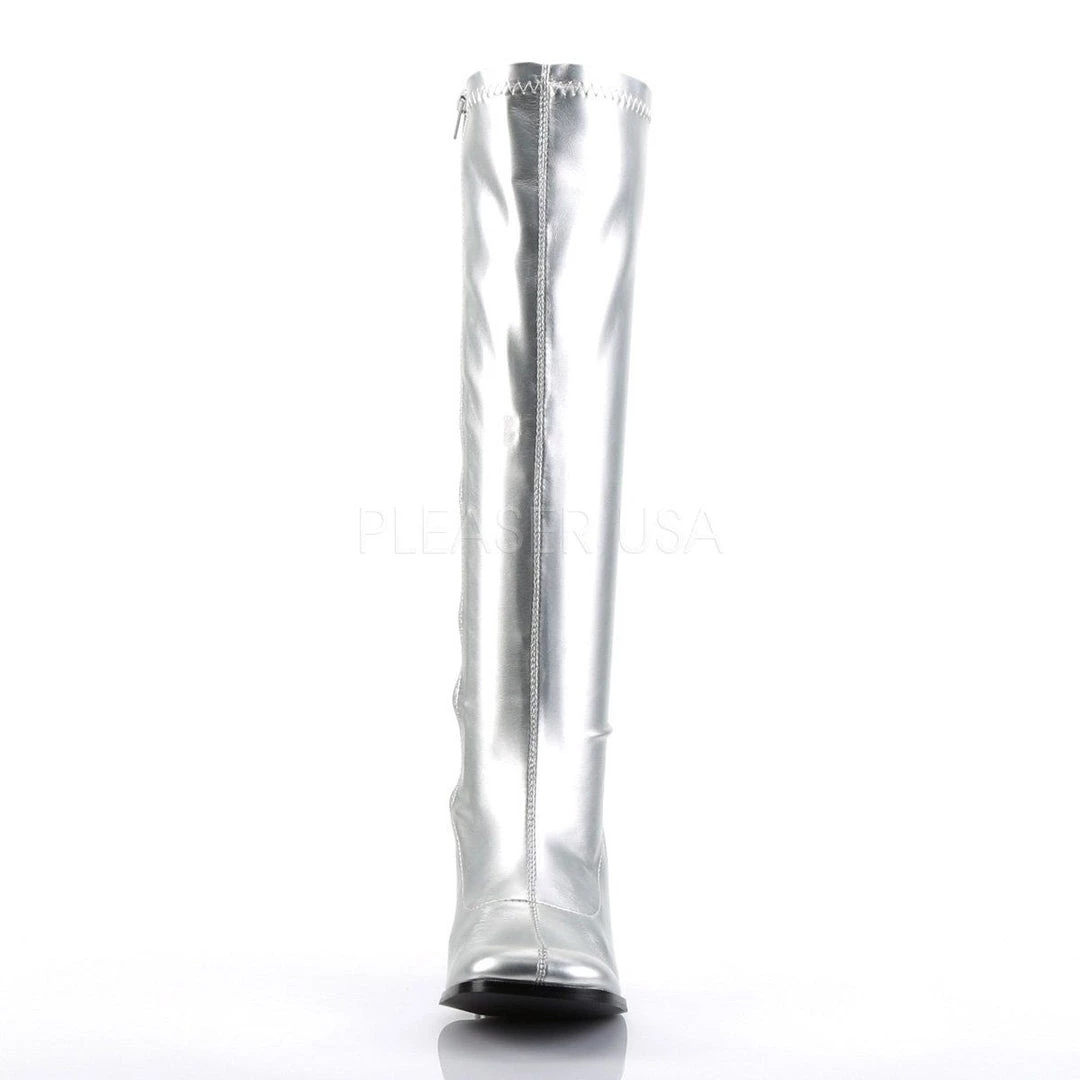 GOGO-300 Silver Metallic Stretch Pu Women’s Boots (SKU: GOGO300/S/PU)