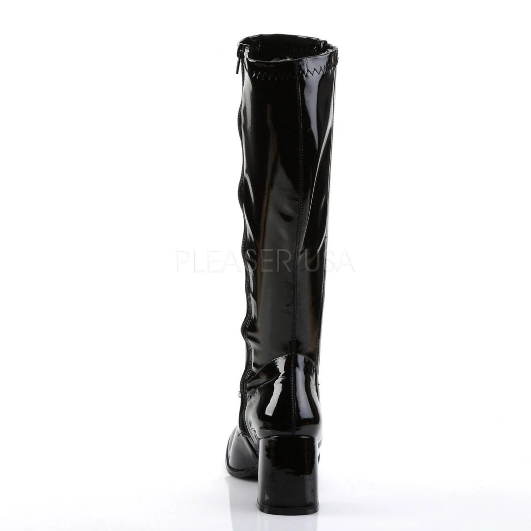 Details: 3 Inch Block Heel, Gogo Boot, Str. Pat & TPU, Side Zip.