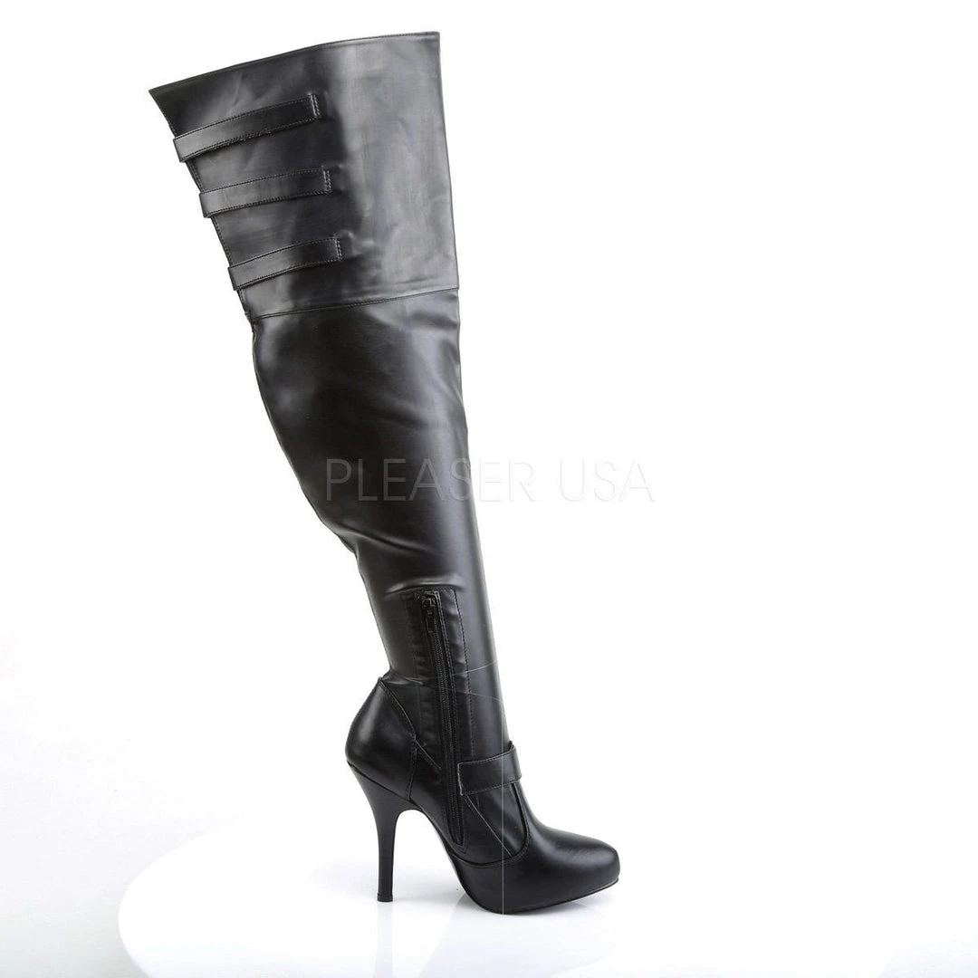 Details: 5 Inch Heel, 1/2 Inch Hidden Plaform , Wide Width/Shaft, Thigh High Boot.