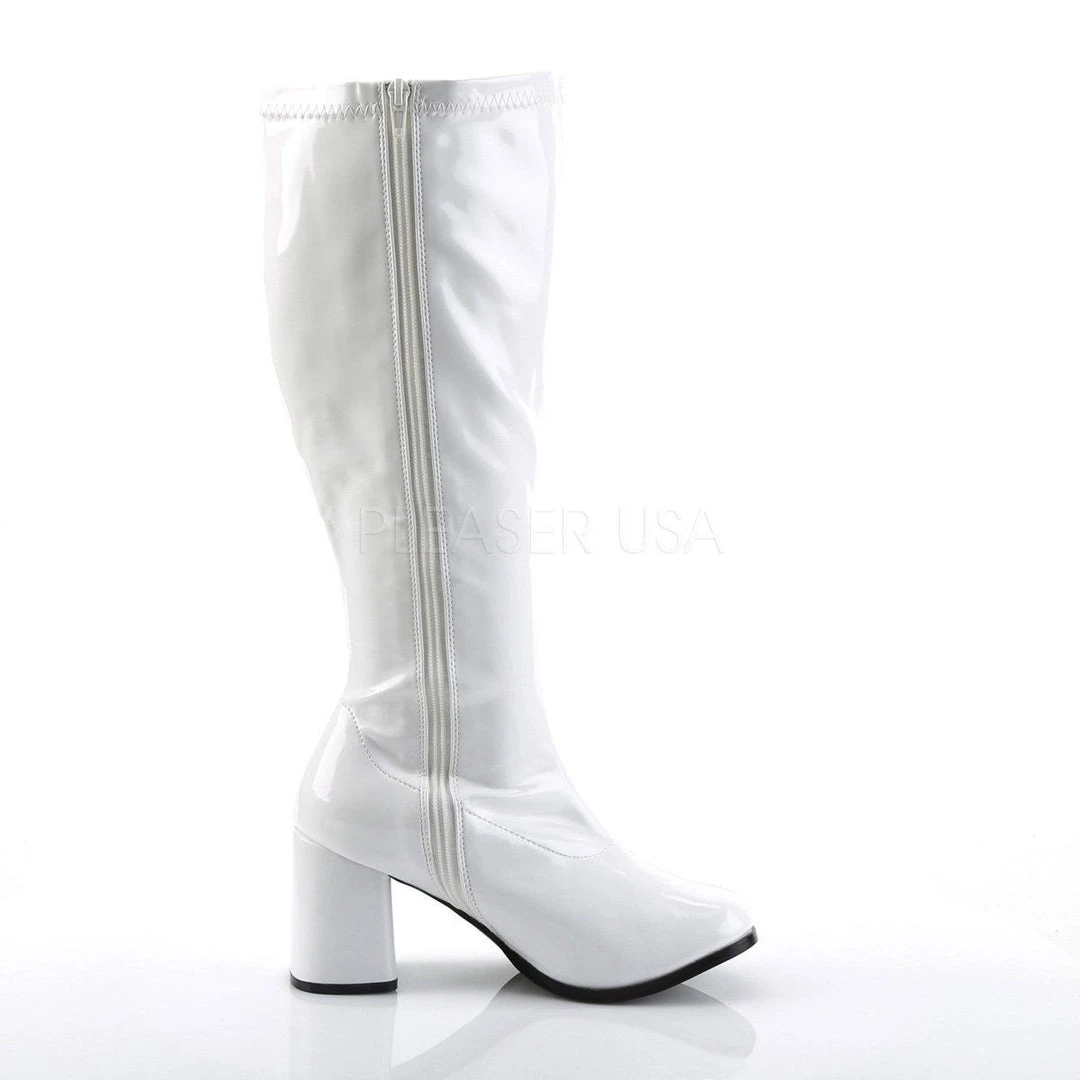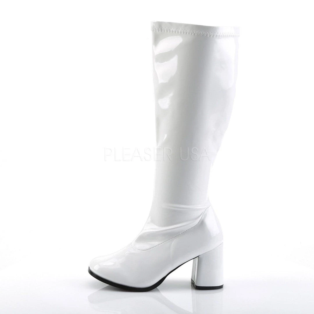 GOGO-300X White Stretch Patent Plus Sizes & Wide Width/Shaft (SKU: GOGO300X/W)