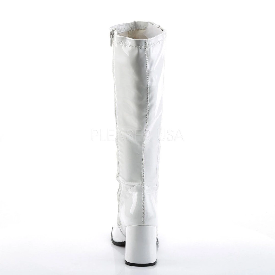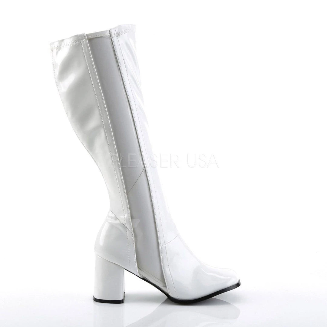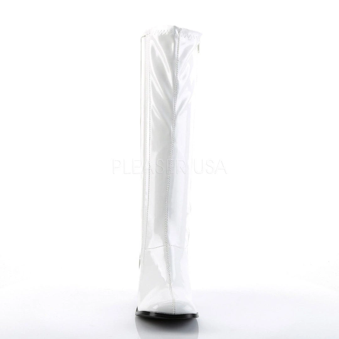 GOGO-303 White Stretch Patent- Clear Tpu Women’s Boots (SKU: GOGO303/W-C)