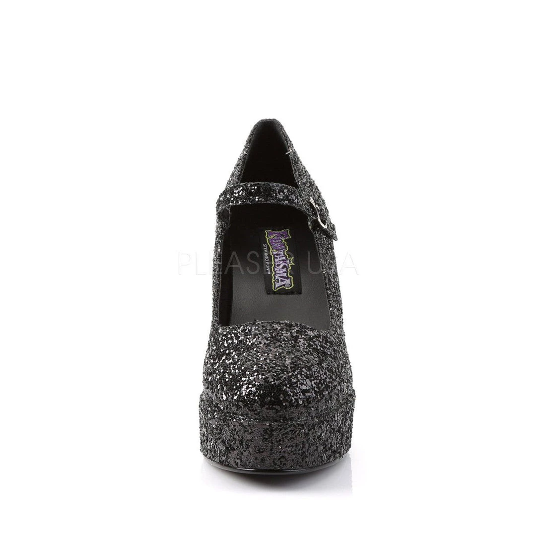 Details: 4 Inch Heel, 1 1/2 Inch Plaform , Heel Mary Jane Pump with Glitter.