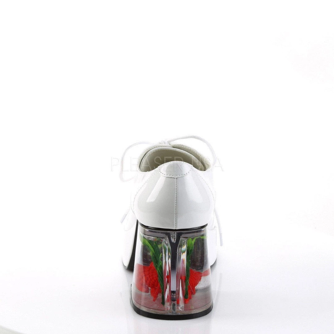 Details: 3 1/2 Inch Heel, 1 1/2 Inch Plaform Men’s Disco Platform with Floating Fish.