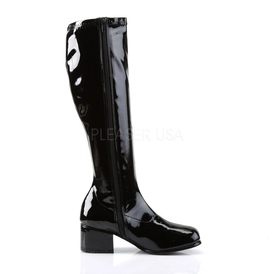 RETRO-300 Black Stretch Patent Women’s Boots (SKU: RET300/B)