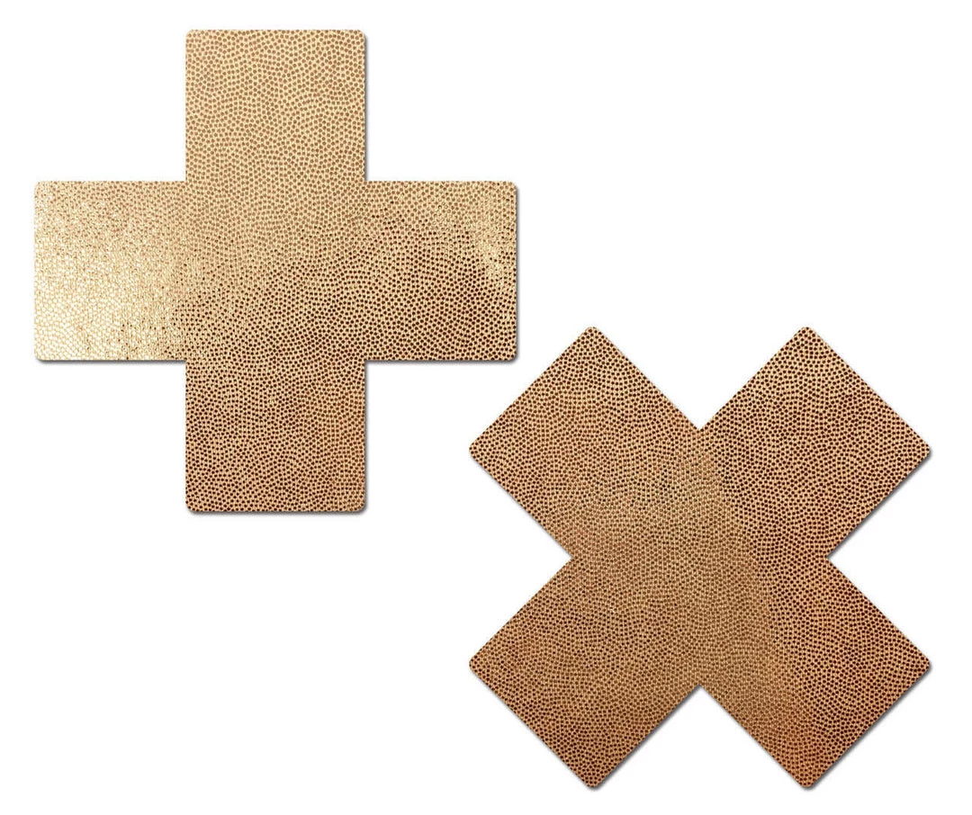 Plus X: Liquid Rose Gold Cross Nipple Pasties by Pastease® o/s