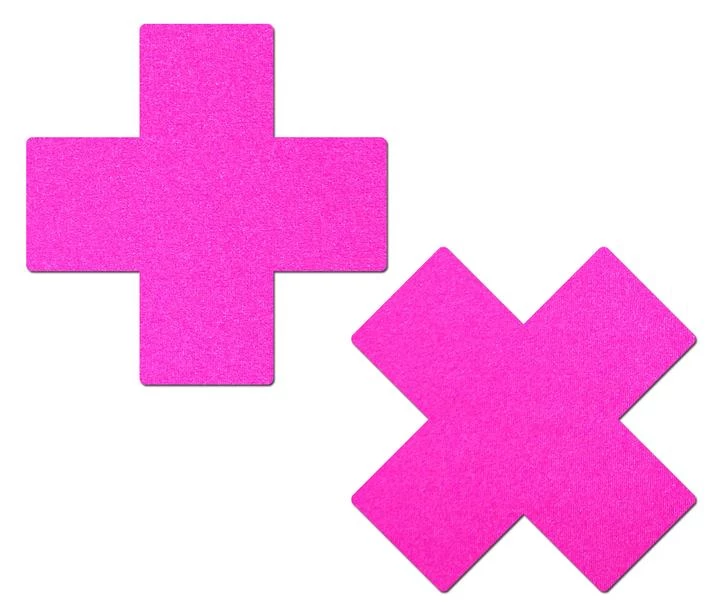 Plus X: Neon Pink Day-Glow Lycra Cross Nipple Pasties by Pastease®.