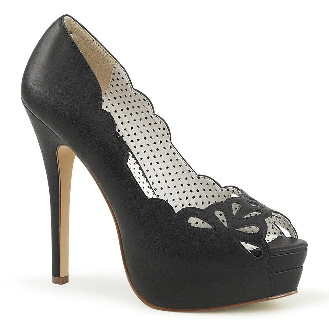 Details: 5 1/4 Inch Heel, 1 1/2 Inch Plaform Peep Toe Pump W/Cut-Out Detail.