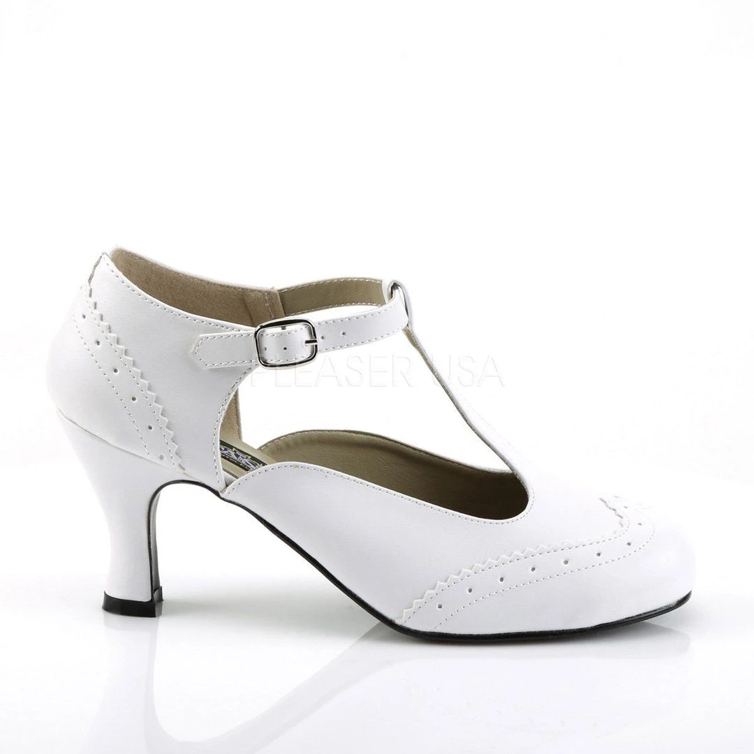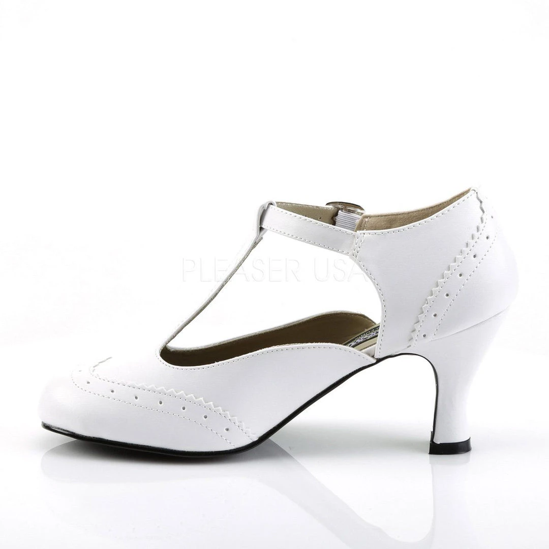Details: 3 Inch Kitten Heel Round Toe T-Strap Pump.