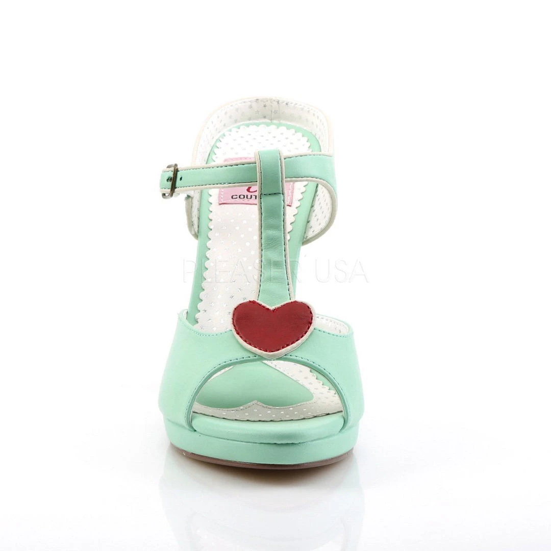 Additional Info: 4″ (10.2cm) Heel 1/2″ (1.3cm) Platform T-Strap Slide with Heart Accent.