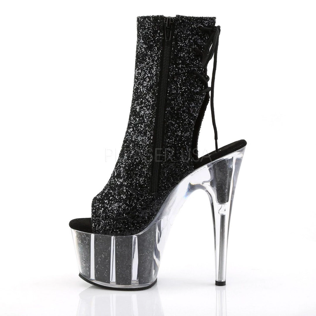 Details: 7 Inch Heel, 2 3/4 Inch Plaform Glitter Ankle Boot, Side Zip.