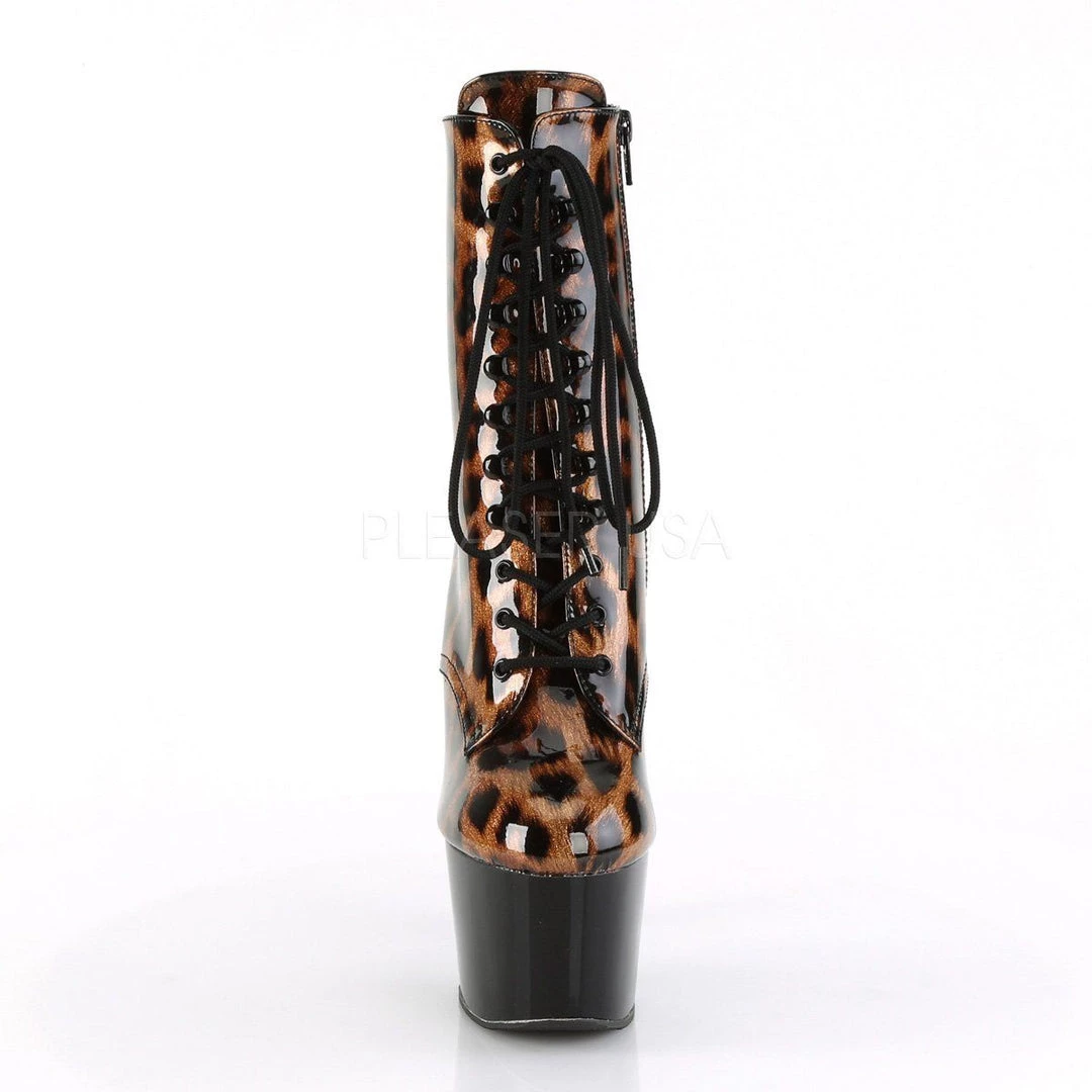 Additional Info: 7″ (178mm) Heel, 2 3/4″ (70mm) Platform Lace-Up Front Ankle Boot w/Leopard Print, Full Inner Side Zip Closure.
