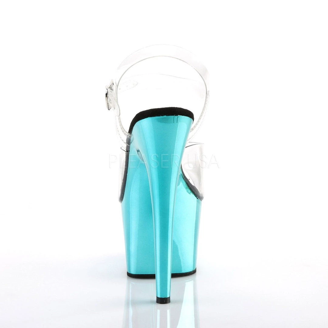 ADORE-708 Clear /Turquoise Chrome Platforms (Exotic Dancing) (SKU: ADO708/C/TURCH)