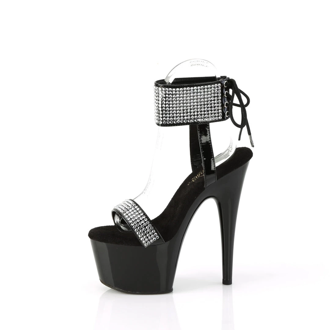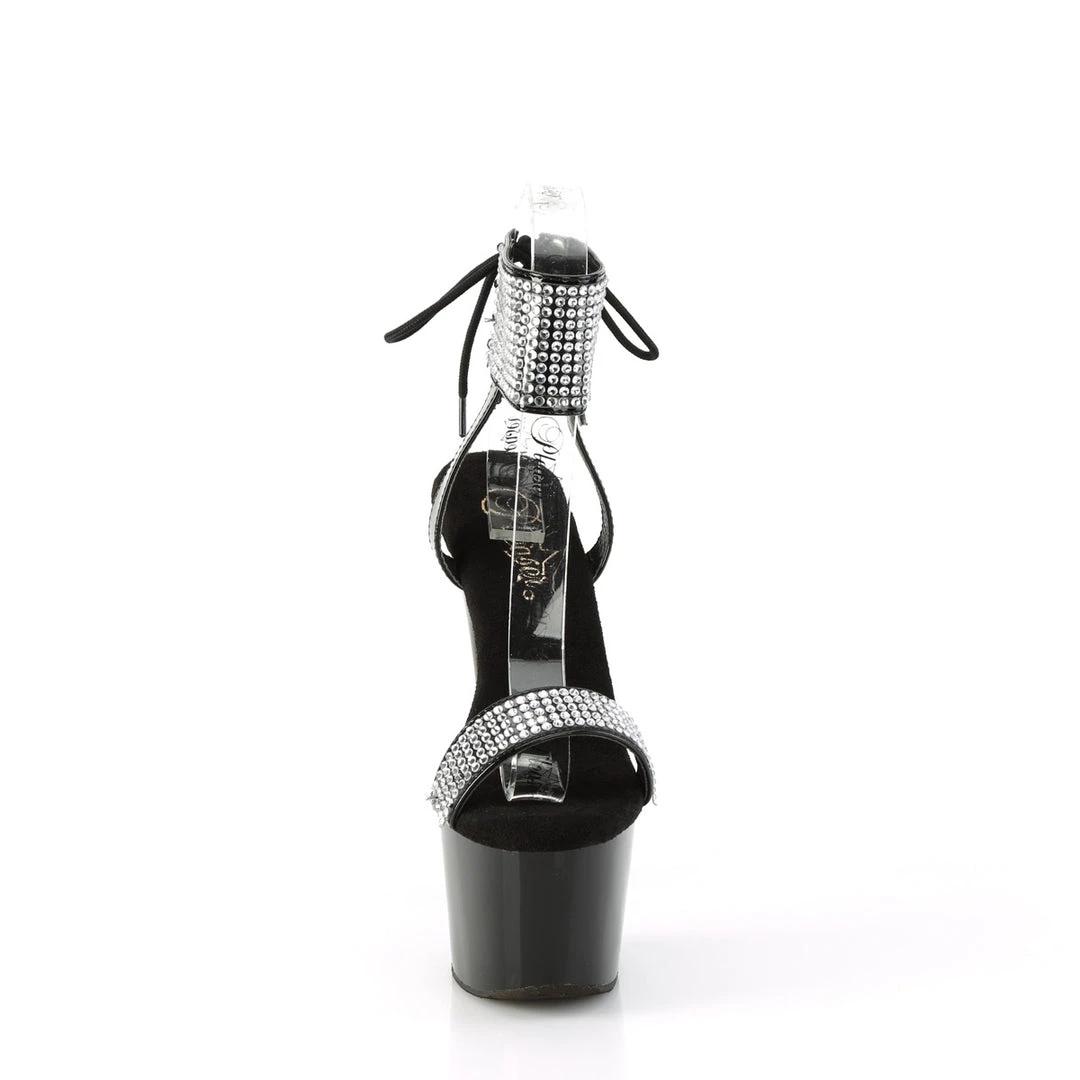 Additional Info: 7″ (178mm) Heel, 2 3/4″ (70mm) Platform Lace-Up Back Sandal Featuring Rhinestones All Over Ankle Cuff & Toe Strap.