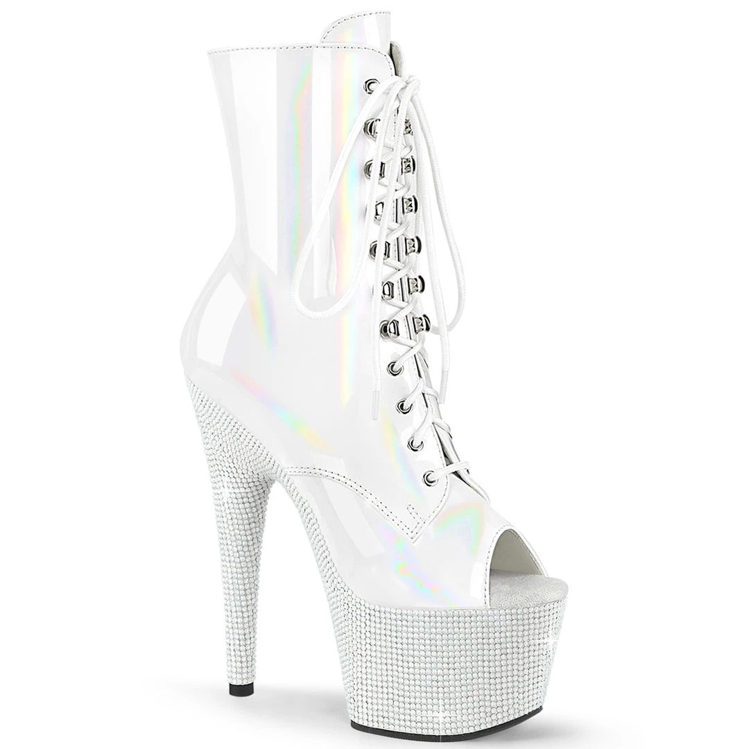 BEJEWELED-1021-7 White Holo Patent/White Rhinestones Platforms (Exotic Dancing) (SKU: BEJ1021-7/WHG/WRS)