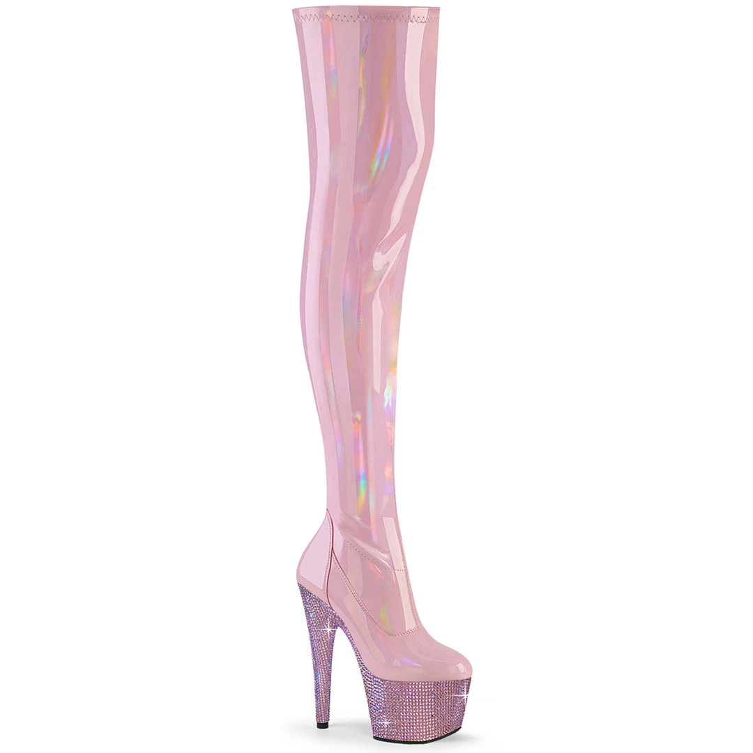 BEJEWELED-3000-7 Baby Pink Stretch Holo Patent/Baby Pink AB Rhinestones Platforms (Exotic Dancing) (SKU: BEJ3000-7/BPHG/BPRS)
