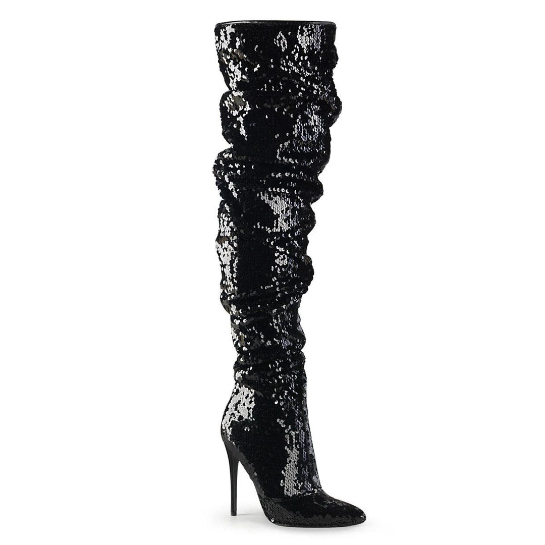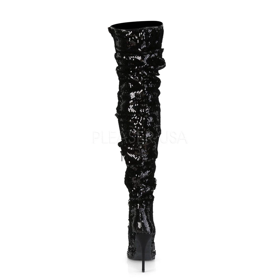 Additional Info: 5″ (127mm) Heel Over-the-Knee Boot Featuring Ruched Slouchy Sequins Body, 1/3 Inner Side Zip Closure.
