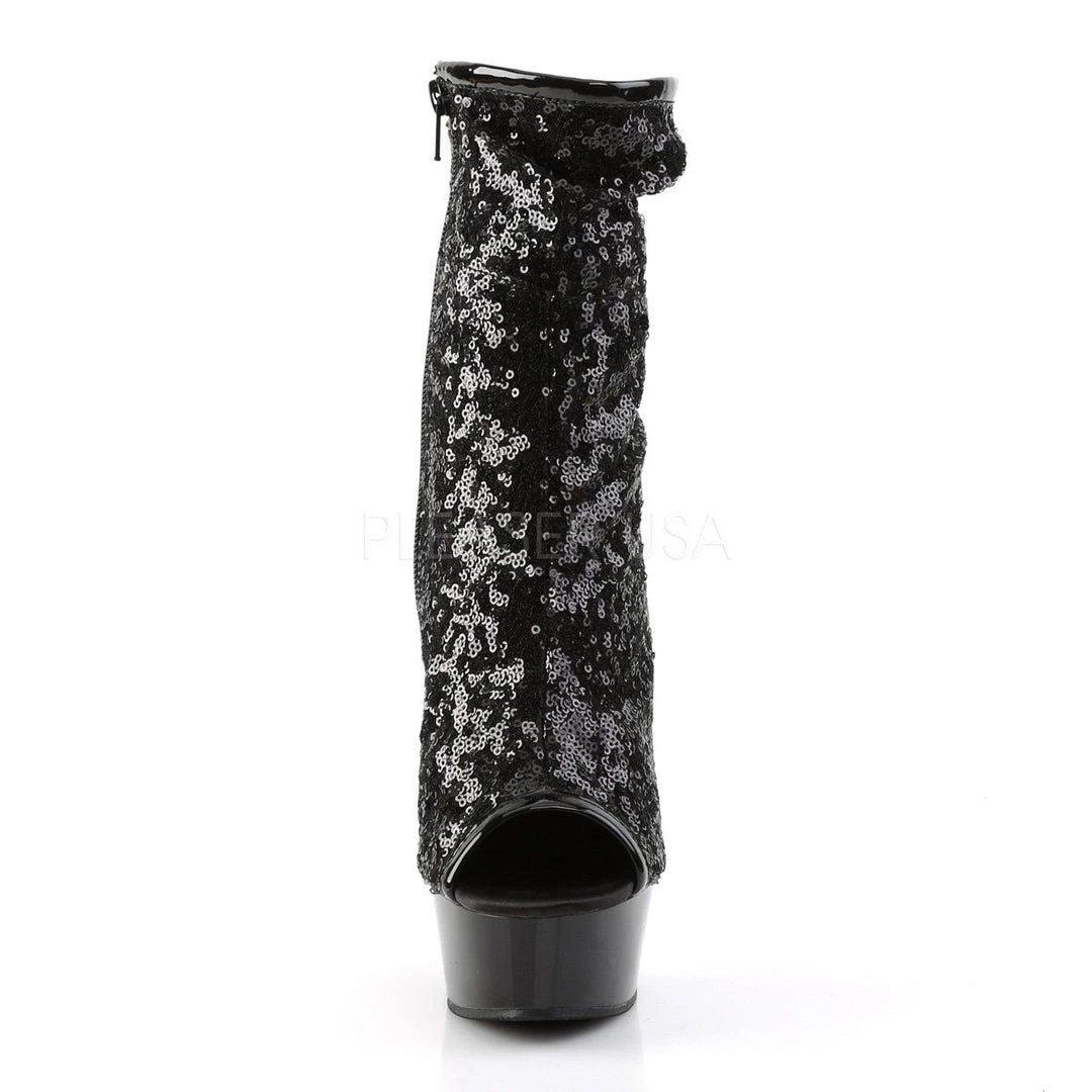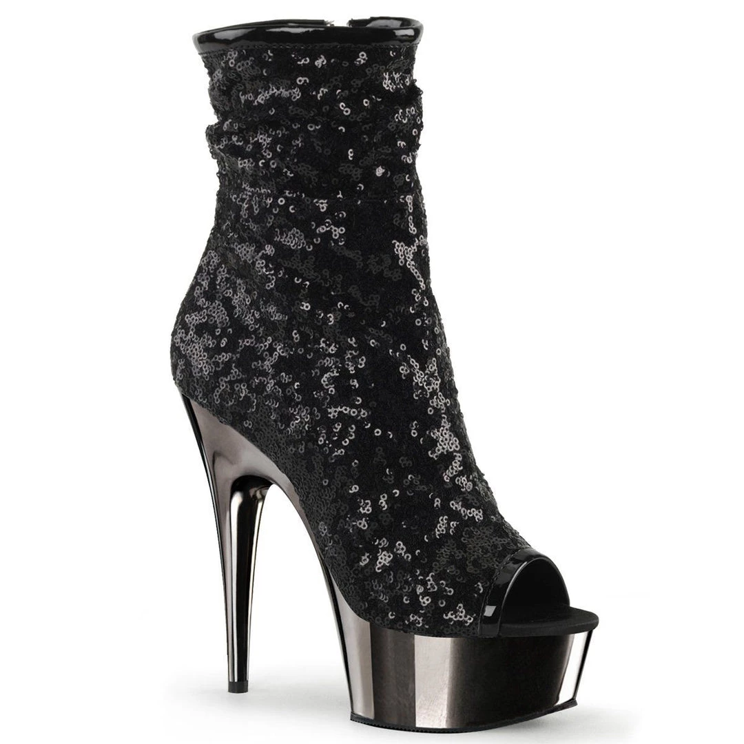 Details: 6 Inch Heel, 1 3/4 Inch Plaform Peep Toe Sequins Ankle Boot, Side Zip.