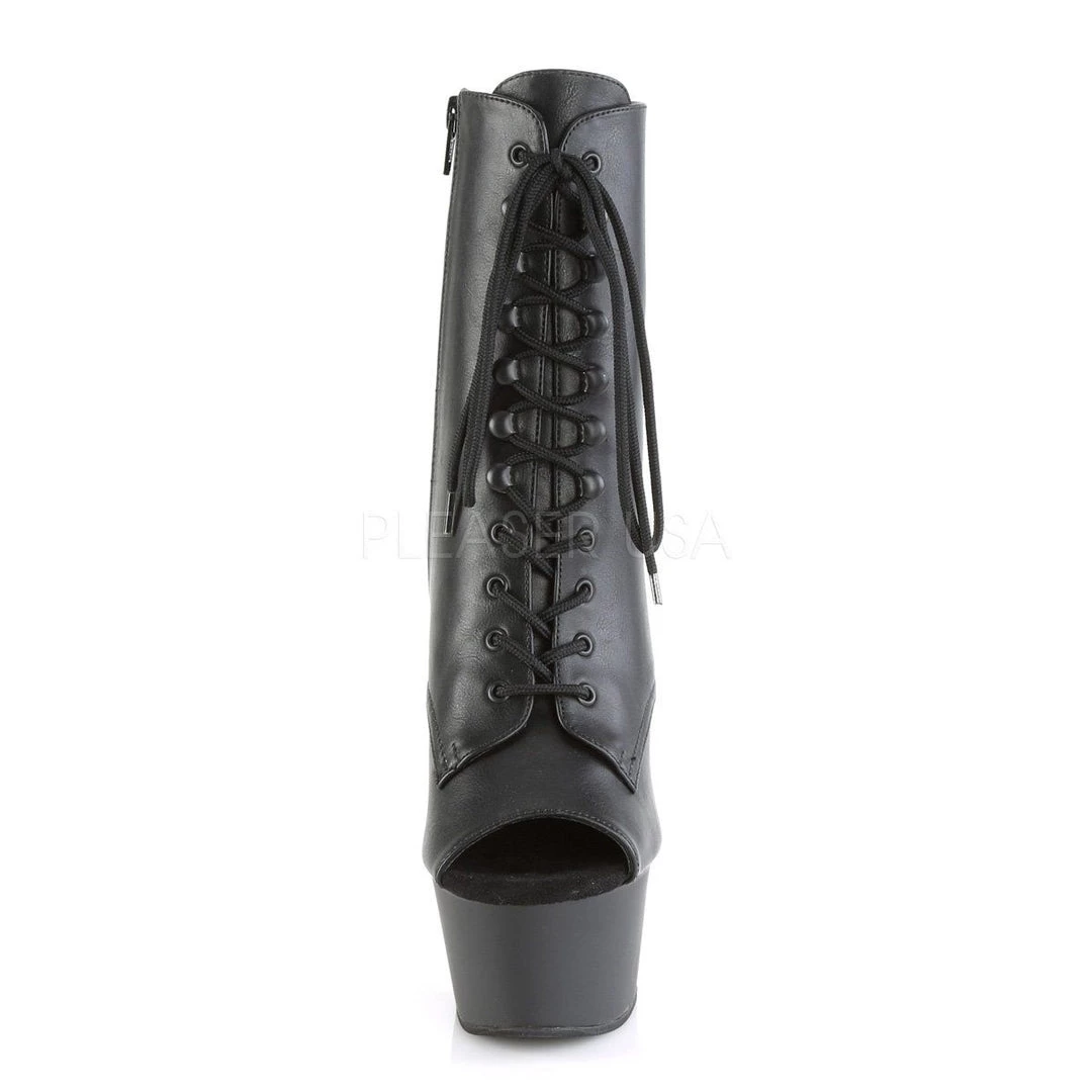 Additional Info: 6″ (152mm) Heel, 2 1/4″ (57mm) Platform Open Toe Lace-Up Front Ankle Boot, Inner Side Zip Closure.