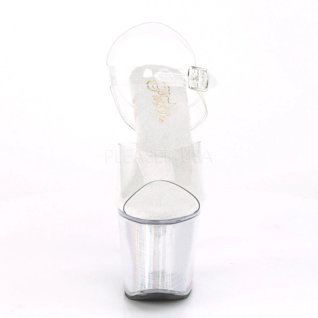 FLASHDANCE-708SCH Clear /Silver Hologram Platforms (Exotic Dancing) (SKU: FDANCE708SCH/C/SHG)