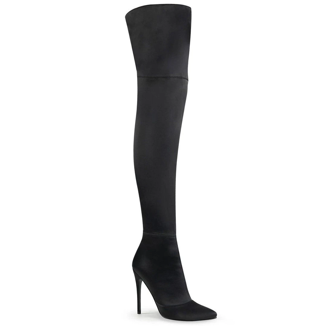 Additional Info: 5″ (127mm) Heel Stretch Thigh High Boot w/ Back Slit, Full Length Back Zip Closure.