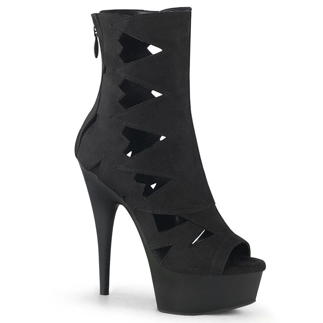 Additional Info: 6″ (152mm) Heel, 1 3/4″ (45mm) Platform Peep Toe Cutout Ankle Boot, Back Zip Closure.