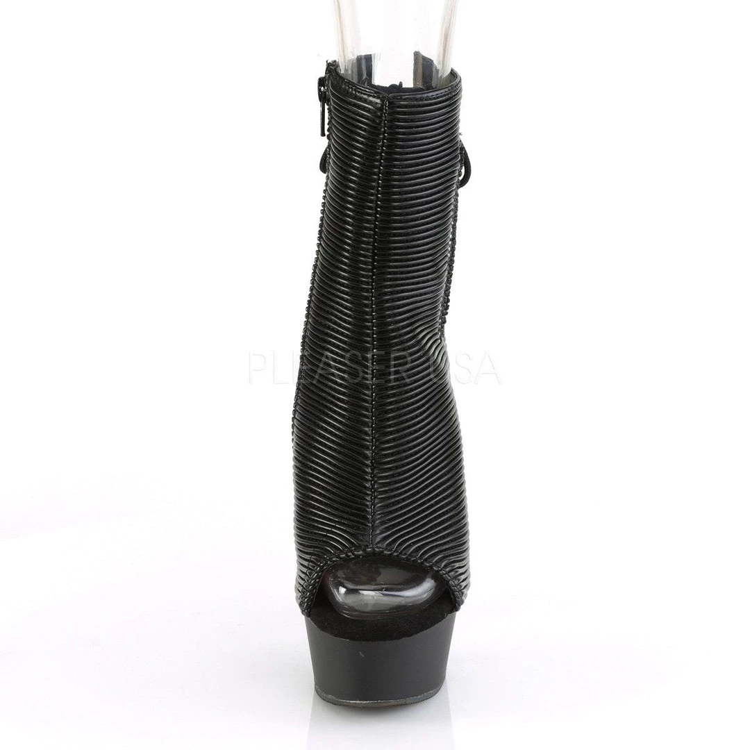 Additional Info: 6″(152mm) Heel, 1 3/4″(45mm) Platform Open Toe/Heel Lace-Up Back Ankle Boot w/ Hidden Zip Pocket, Full Inner Side Zip Closure.