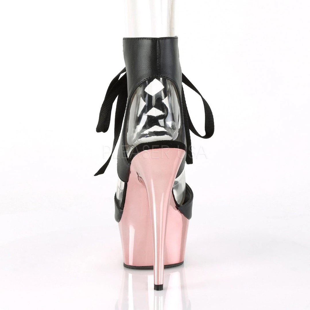 DELIGHT-600-14 Black Faux Leather/Rose Gold Chrome Platforms (Exotic Dancing) (SKU: DEL600-14/BPU/ROGCH)