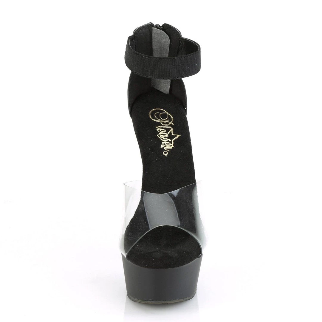 DELIGHT-624 Clear -Black Elastic Band/Black Matte Platforms (Exotic Dancing) (SKU: DEL624/C-BELS/B)