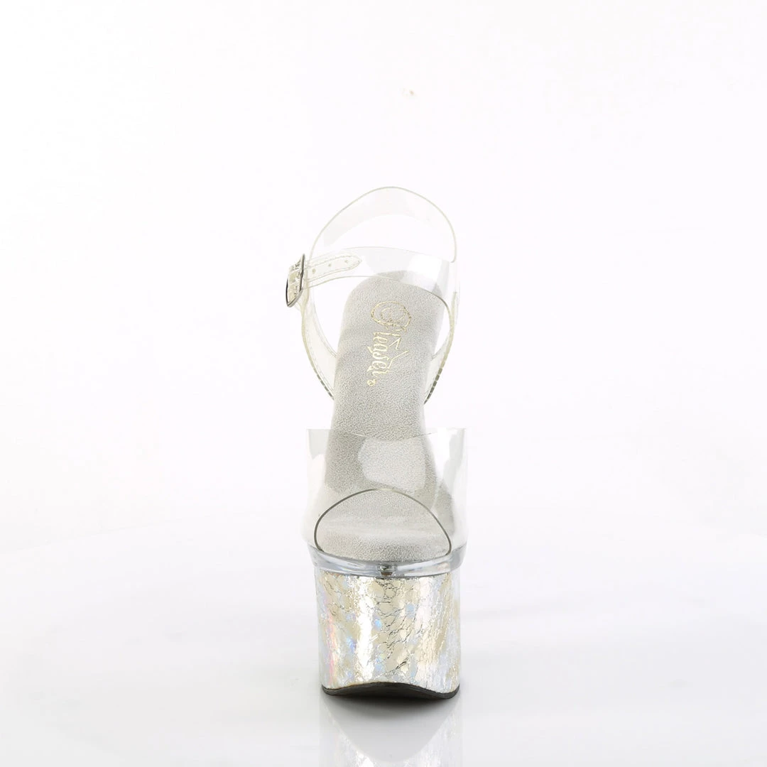 ESTEEM-708CK Clear / Clear -Silver Holo Crackle Platforms (Exotic Dancing) (SKU: ESTM708CK/C/C-SHG)