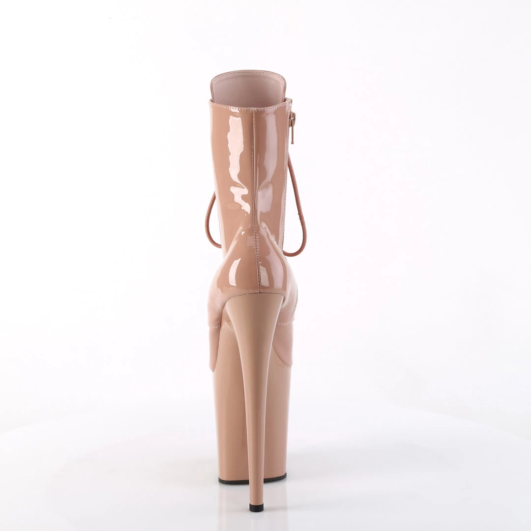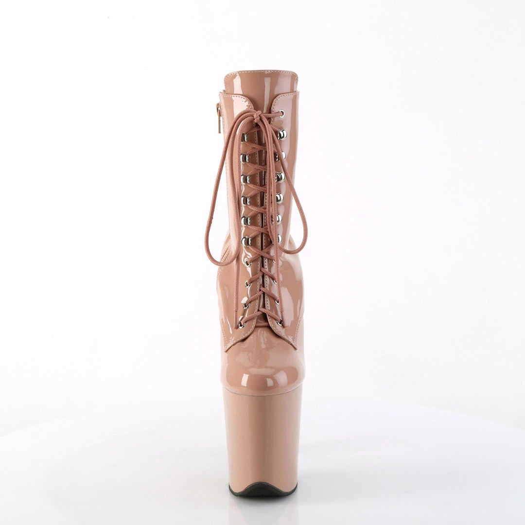 Additional Info: 8″ (200mm) Heel, 4″ (100mm) Platform Lace-Up Front Ankle Boot, Inside Zip Closure.