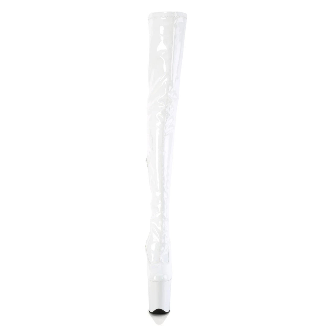 Additional Info: 8″ (200mm) Heel, 4″ (100mm) Platform Stretch Crotch Boot, 1/2 Length Inner Side Zip Closure.