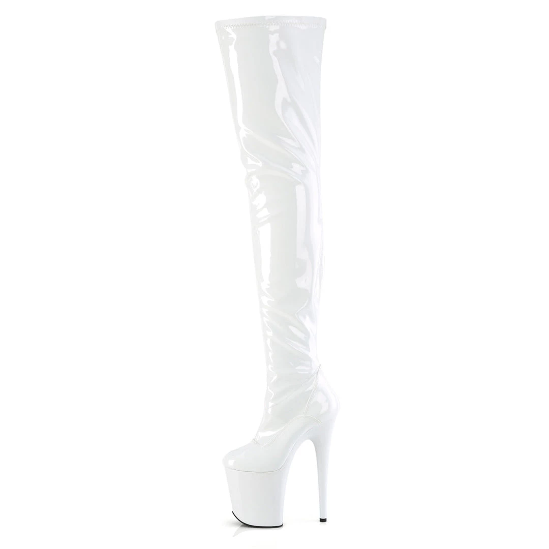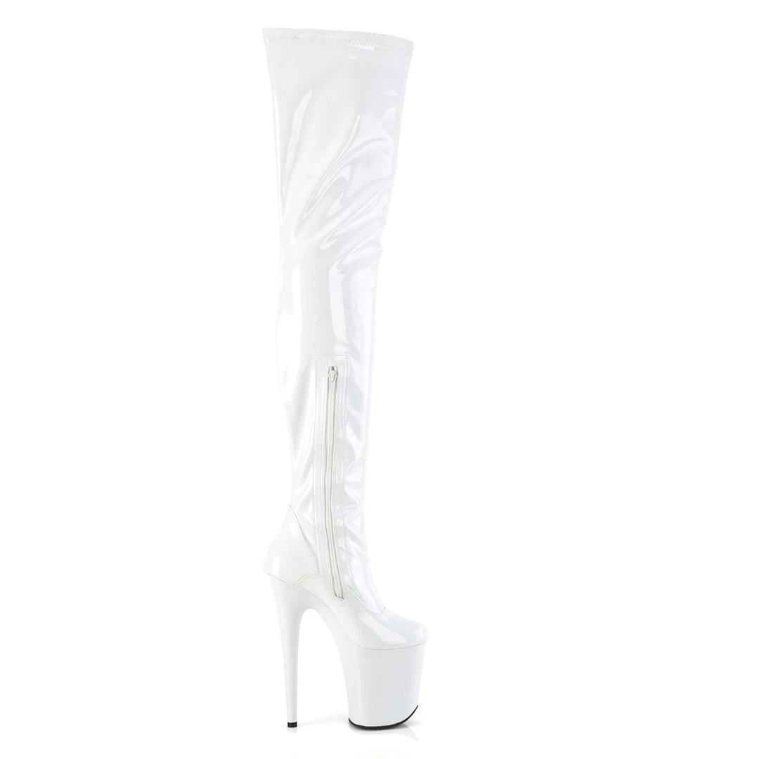 FLAMINGO-4000 White Stretch Patent/White Platforms (Exotic Dancing) (SKU: FLAM4000/W/M)